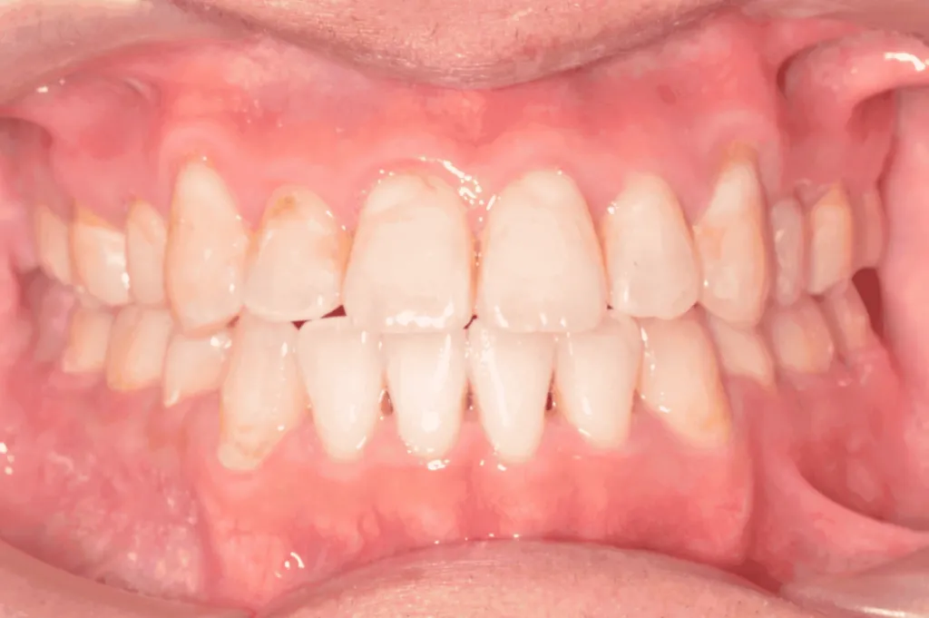 | 治療のリスクについて | 1日20時間以上の装着が必要のため、時間管理が必要です。 歯が動いていくことによる、痛みがあります。 また、歯肉が退縮するリスクもあります。 週に一度、新しいマウスピースに交換していきました。 替えてから1〜2日は痛みがあったそうですが、段々と慣れていったそうです。 |